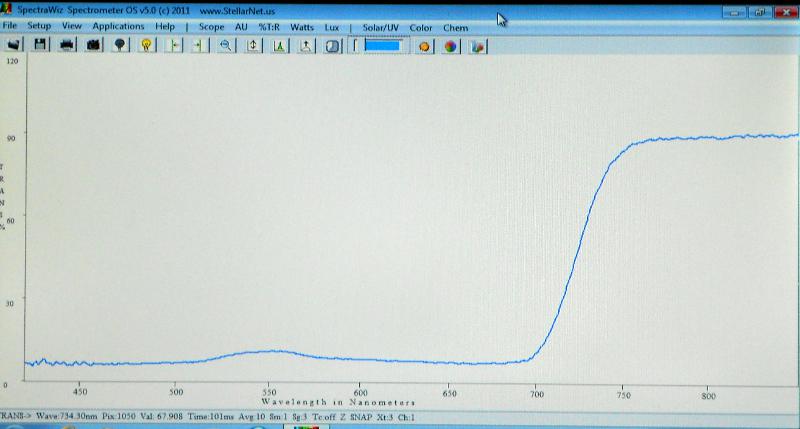 Here is a spectral absorption profile of a high nitrogen marijuana leaf (Jack Herer).