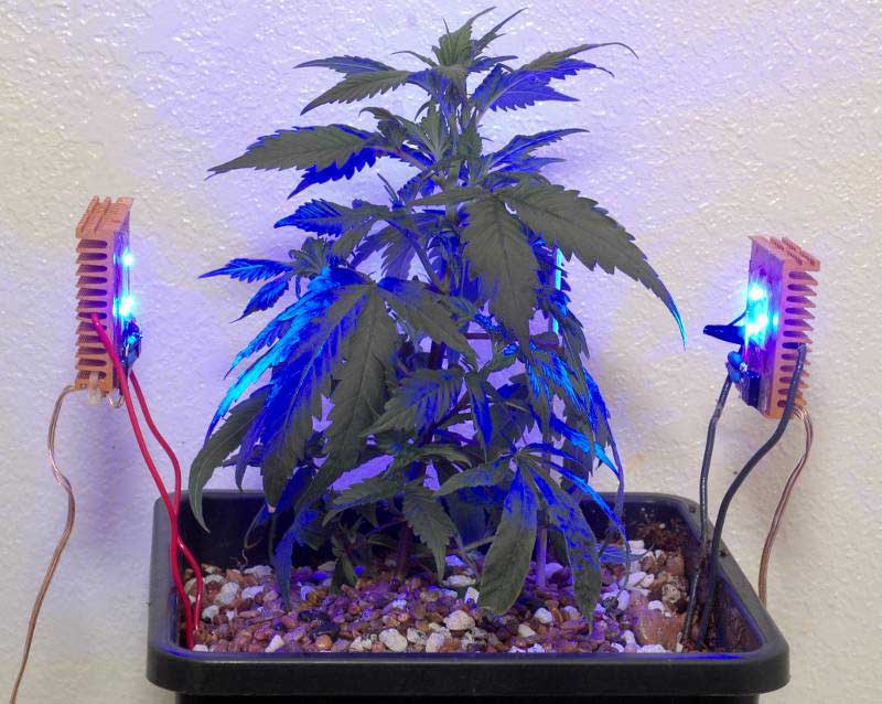 For use on stems, as shown in this young Jack Herer Plant (pictured to right), you have to get the blue LED array up close to the stem with uninterrupted light.