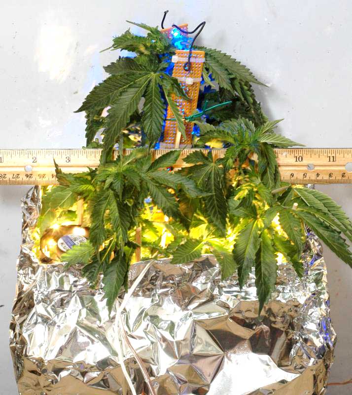 To the right is a mystery skunk marijuana plant giving to me where I can get 4-5 internodes per inch, even at lower main lighting levels.