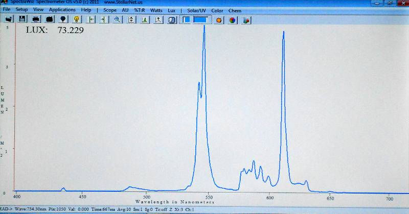 I showed some spectrum shots below only to illustrate a point of how our eyes and a lux meter perceives light and versus what’s closer to what a plant sees.