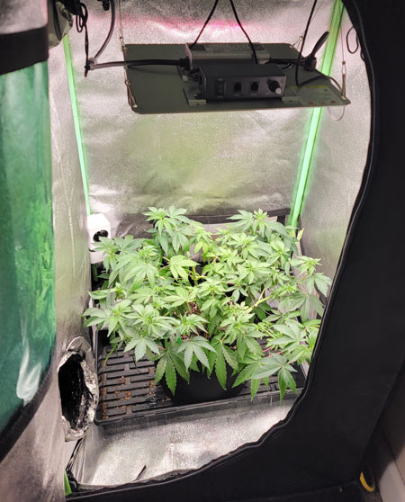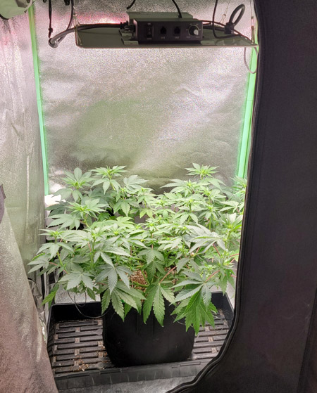 An extra “mom” cannabis plant got put in a 2’x2’x4′ grow tent under Spider Farmer SF-1000 LED.