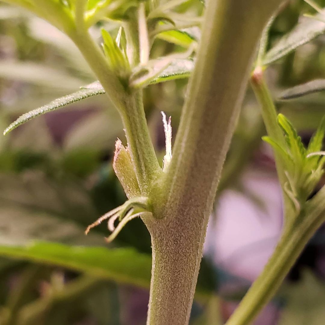 Several growers asked for more tips on how I defoliate my plants after my last post. These plants started a 12/12 light schedule a week ago and are beginning to make flowers/white hairs (sometimes called pistils).