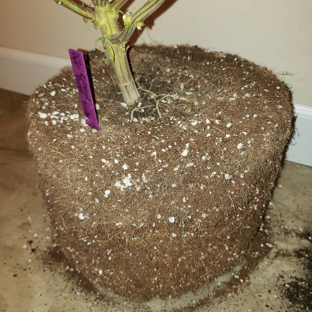 The coco plants were given the Flora trio plus CaliMagic as nutrients. Here’s the coco root ball by itself. The coco root ball weighs less and has a lighter appearance.