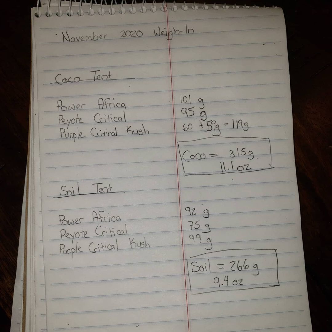 Finally! Here’s the Coco vs Soil grow journal harvest weigh-in. Over 20 oz for the grow!