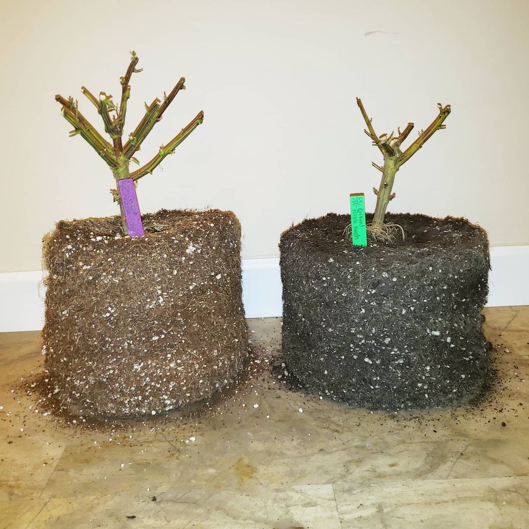 The soil plants got all their nutrients directly from the soil. Here’s the soil root ball. The soil root ball is heavier and has a darker richer color.