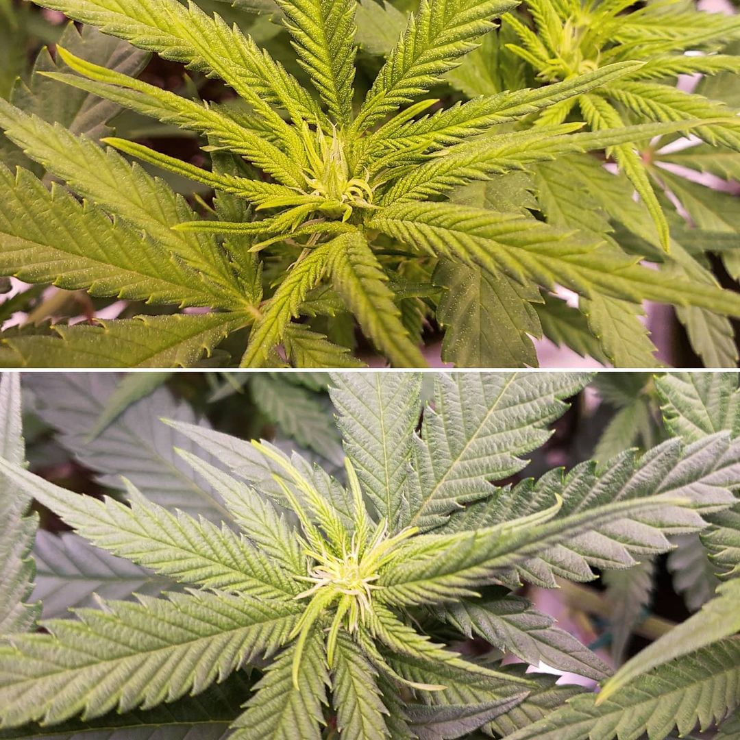 Purple Critical Kush (coco left, super soil right) – not much sign of of purple yet
