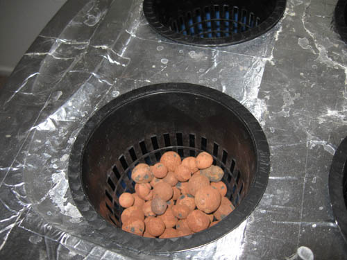 - Use hydroton rocks to completely fill up any net pots that won’t have plants growing in them. You don’t want any light to get down into the reservoir because light encourages root rot and other root problems.