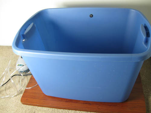You should always clean and vacuum out your growing area before you start a grow (for bugs, dust, mold, etc.). You may also need to have your reservoir raised off the ground depending on how you plan to drain it; we’ll cover that in a bit. I use a battery-powered pump (which I recommend), so in my case raising the reservoir isn’t necessary.