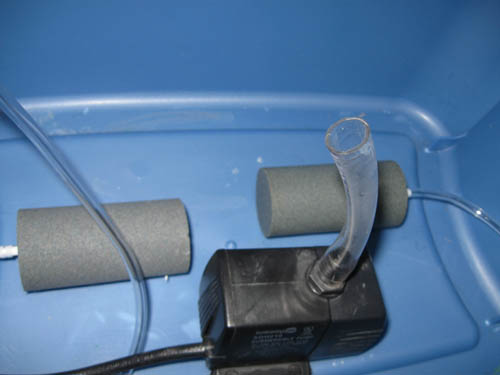 Note: I use tap water and it works fine. This may vary depending on where you live, but it seems that a lot of people have success with tap water. - Place the last net pot in and run a tube to it if necessary.