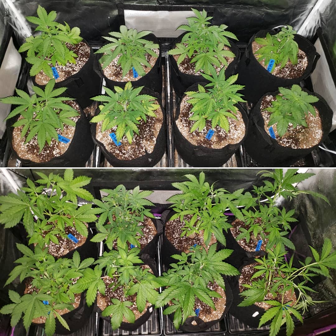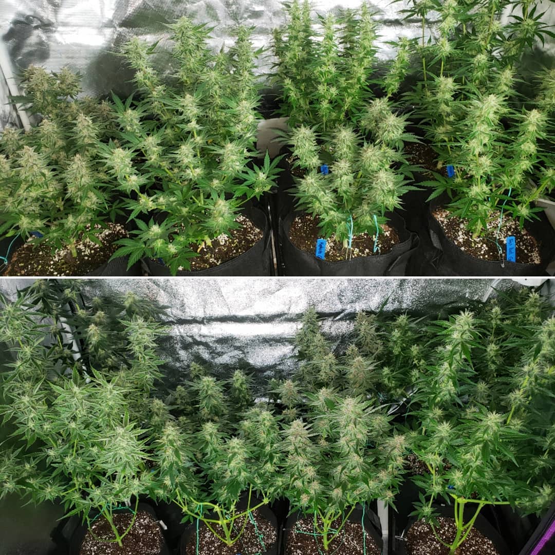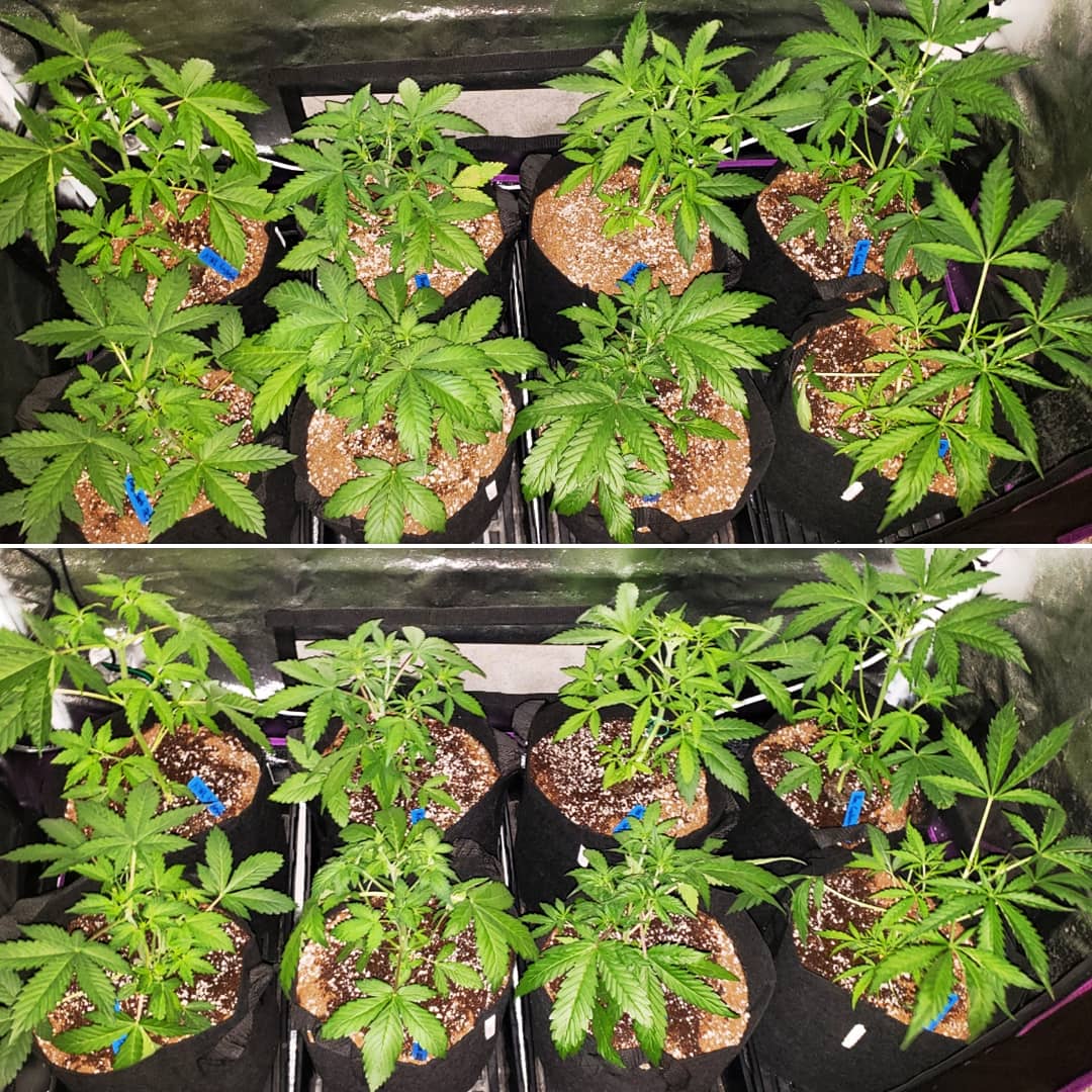 Here’s a “before and after” of what the HPS plants looked like today. I did the same training in the LED tent.
