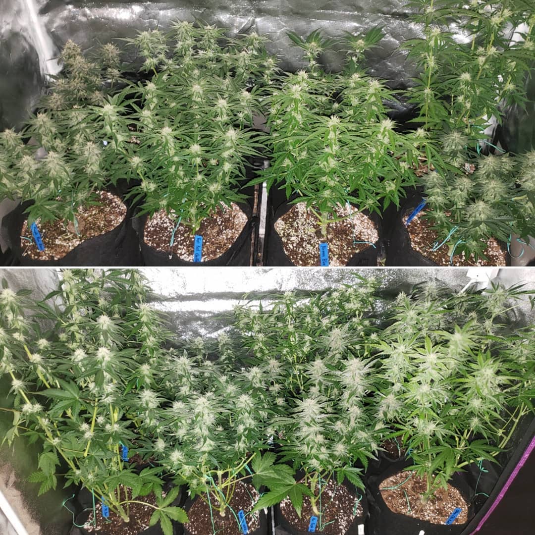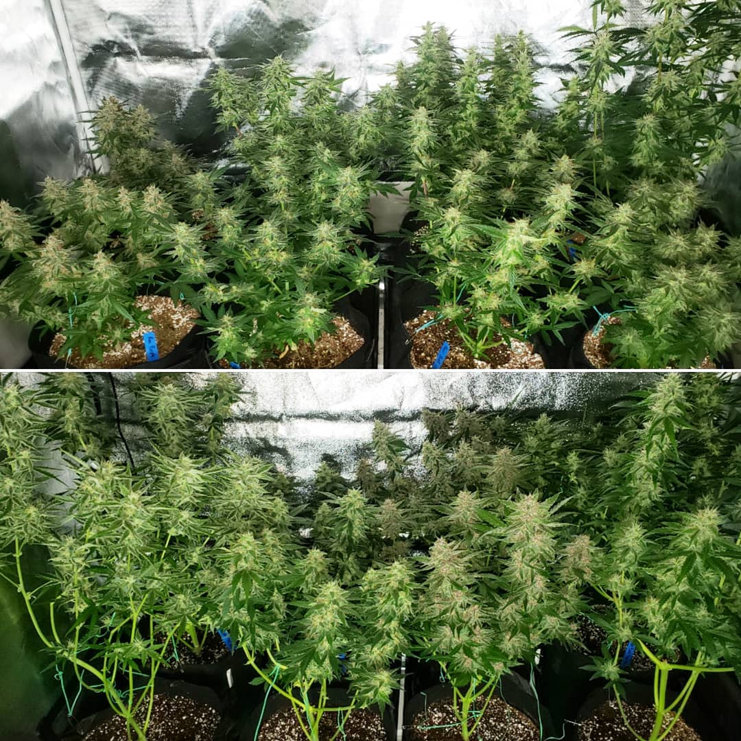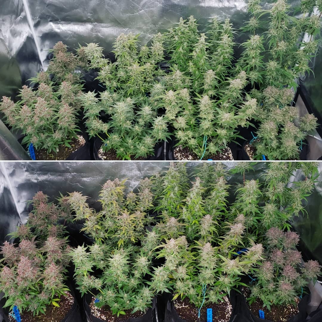 Here’s a “before and after” of what the HPS plants looked like today. I did the same training in the LED tent.