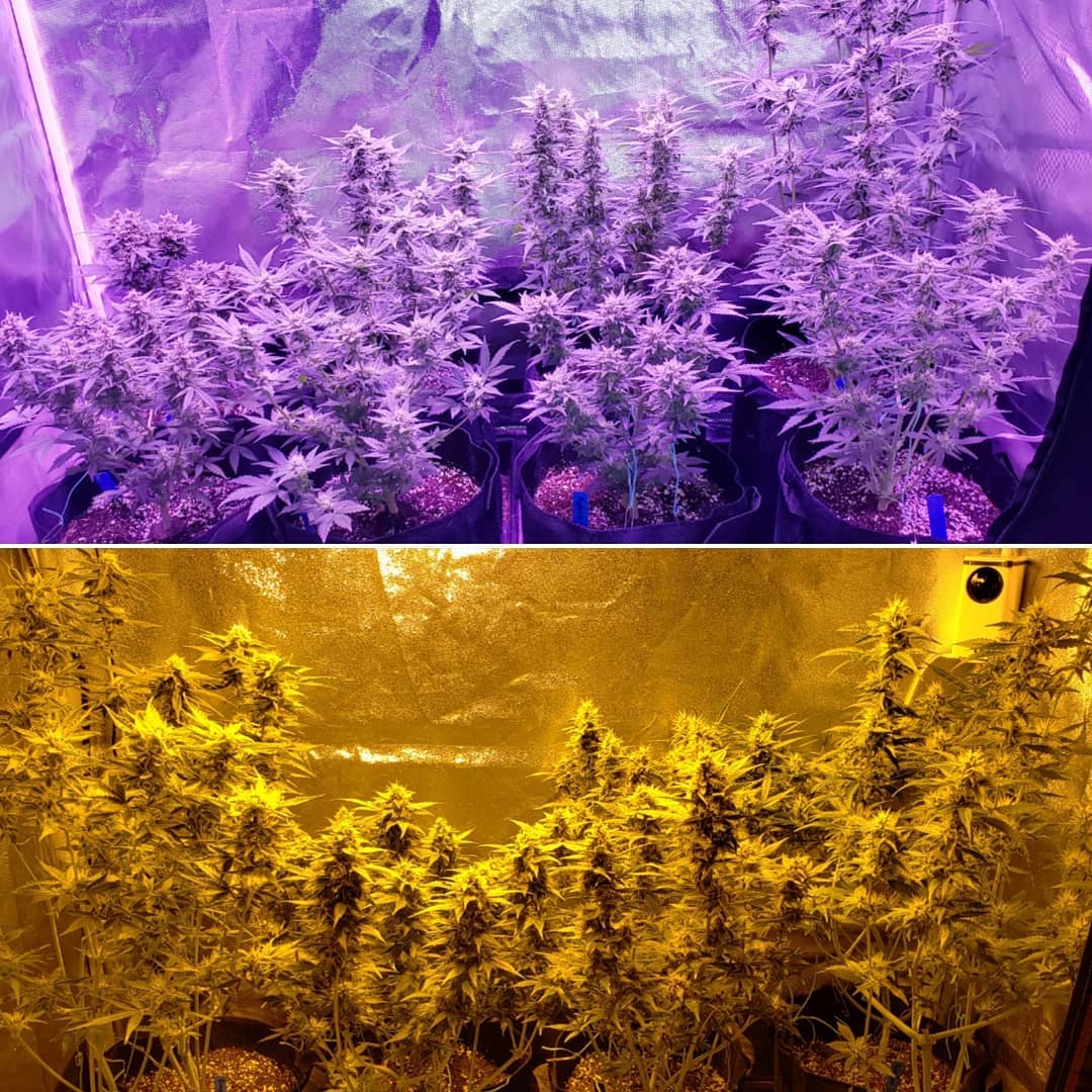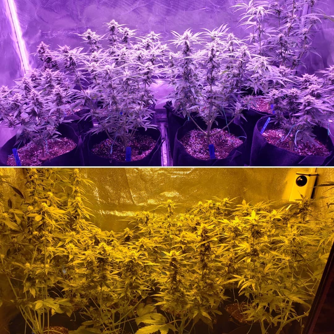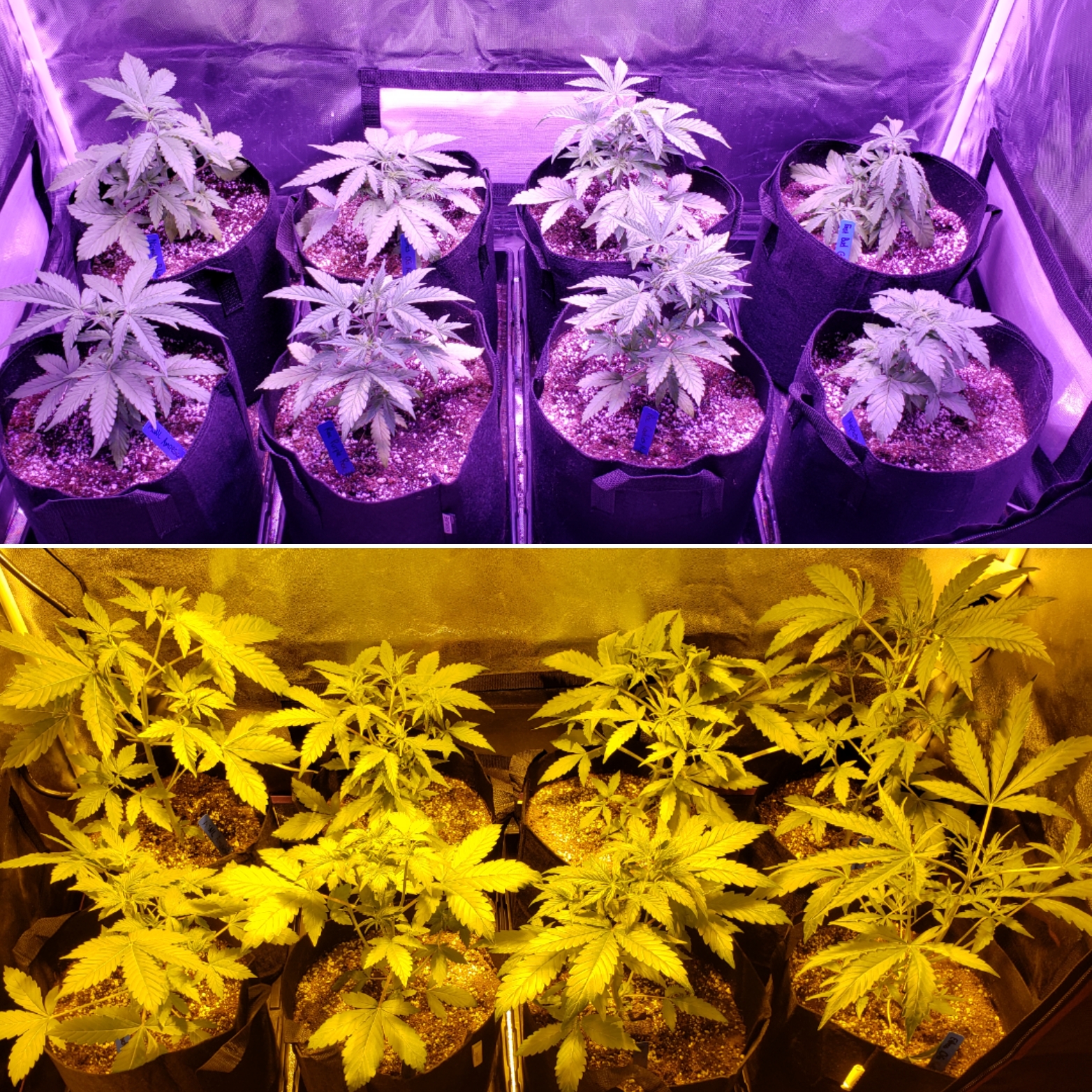 Top of each picture shows the ViparSpectra LED tent (purple), and bottom shows the HPS tent (yellow)