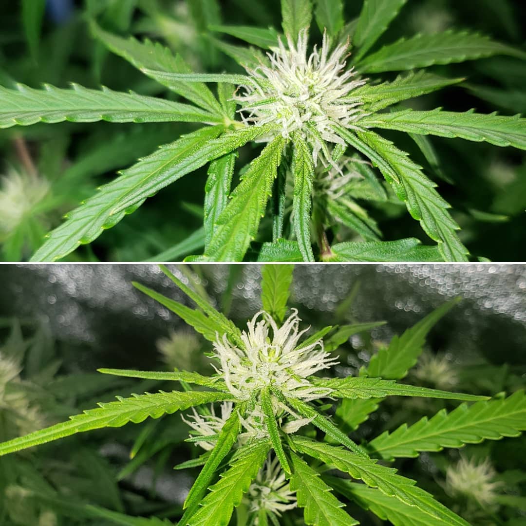 August 18 – Bud comparison time! Each of these pictures shows the same strain, but the top bud is from the ViparSpectra LED tent while the bottom bud is from the HPS tent.