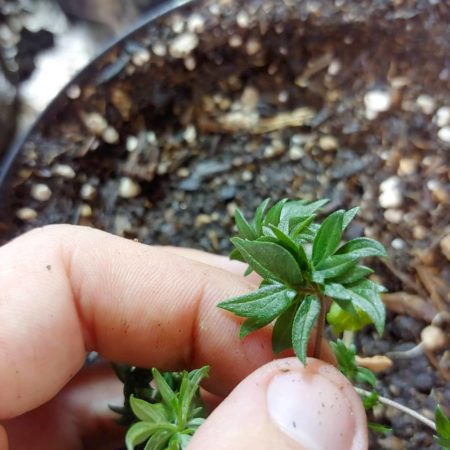Note for breeders: The ABC leaf trait is recessive. That means a plant must receive the ABC trait from both parents for the trait to appear in the offspring. If you cross a pure ABC plant with a standard high-THC cannabis strain, chances are that every single plant of the first generation (F1) hybrids will have “regular” cannabis leaves (because the ABC trait is recessive). However, each of the F1 plants has one copy of the ABC genetic trait from their ABC parent, which means if you breed the F1 plants together, a percentage of the F2 hybrids will show the ABC characteristic. These can continue to be crossed and backcrossed with high-THC plants to retain the ABC leaf trait while improving the resulting flowers and yields over time. I made a quick explanation of recessive vs dominant traits as it relates to cannabis breeding if you’re interested in learning more.