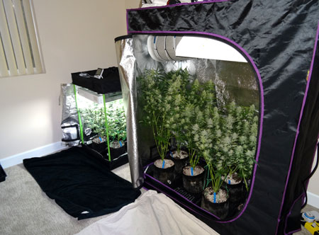 I experimented with growing autoflowers in small spaces (the mini tent on the left is only 3 feet tall).