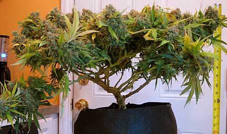 Get cannabis plants to grow flat and wide (via plant training) to make it so all buds are top buds.