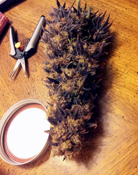 Purple Haze outdoor bud about to get trimmed.
