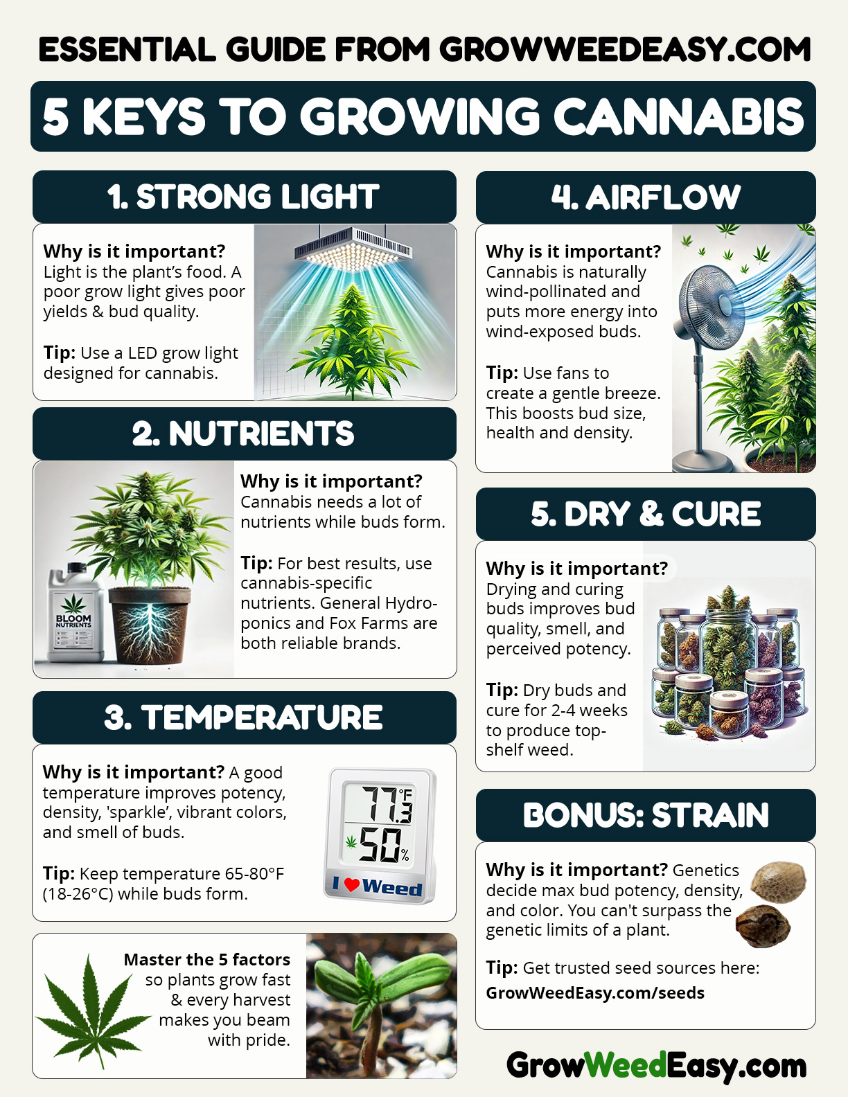 First, here are the 5 keys to growing weed successfully. If you master these 5 simple factors, you quickly achieve “master grower” status.